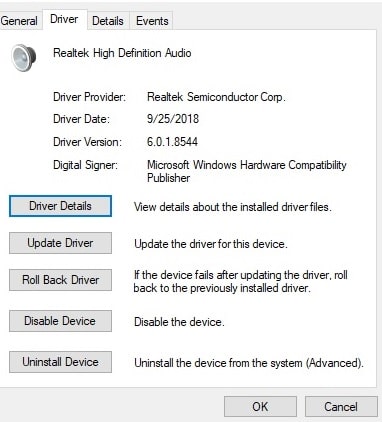 - Select the Driver tab and click Update Driver