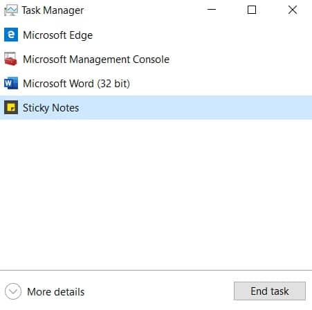 The programs listed will vary depending on what you have running at the moment. If you want to close out of a program, the action is as simple as clicking on the one you wish to close, thus highlighting it like how the Sticky Notes program is highlighted, and click “End Task.” Easy!