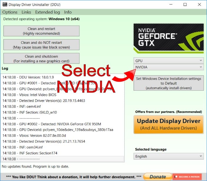 The regular uninstaller for NVIDIA software may leave remnants of the drivers in the PC’s registry. To remove the software completely, use DDA to uninstall the drivers.