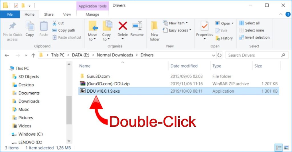 - Once you’ve extracted the files, you can double-click on the DDU application to start the installation process.
