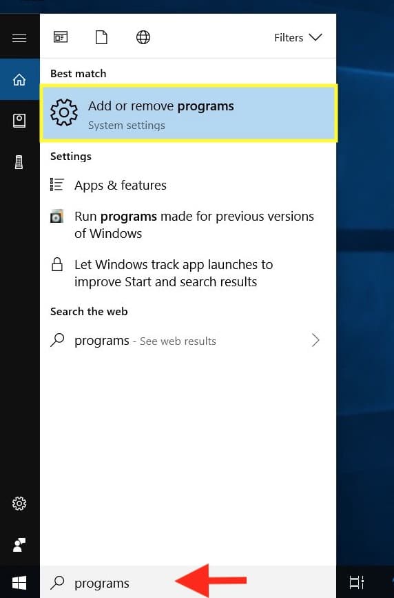 To do so, search for/click on the Add or remove programs app.