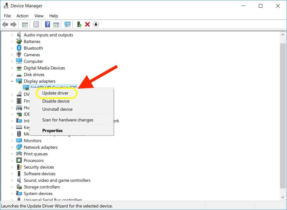 Find your device (let’s say your graphics card), right-click on it and choose Update driver.
