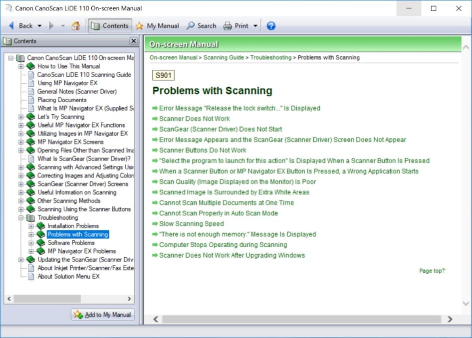 As shown above, Canon doesn’t specifically address the black scan problems in their troubleshooting guide. If you’ve already searched through the manual for a solution, you’ll note that there is a section about updating the CanoScan software if you’re facing issues with the scanner after upgrading or updating your Windows Operating System (OS). This guide will help you with updating the scanner software and drivers on your PC.