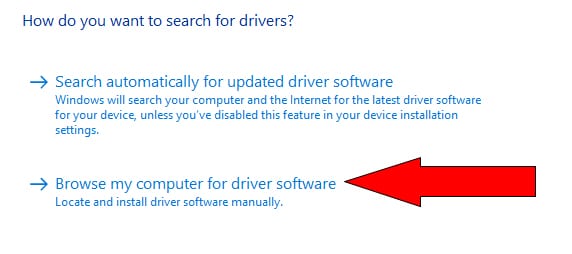 - When prompted, select Browse my computer for driver software.