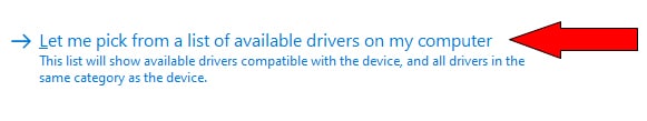 - On the next screen, select Let me pick from a list of device drivers on my computer.