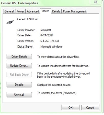 The Properties screen will show an array of tabs containing more detailed information. Hit on the Driver tab to continue.