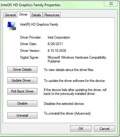 From the screen pictured above, you’ll need to click on the Driver tab.