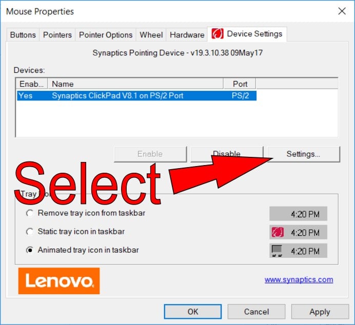 Once you’ve updated the driver, you can customize your touchpad according to your own requirements from the Mouse properties window by selecting “Settings.”