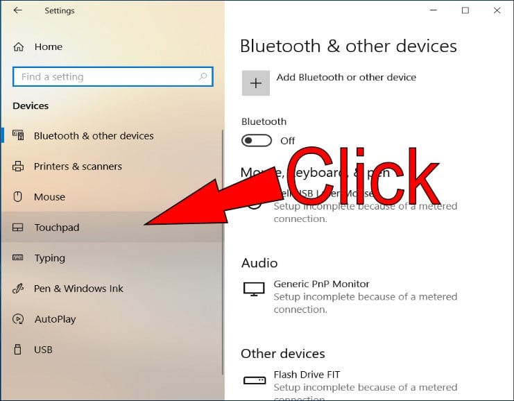 - Scroll down until you see the “Touchpad” section then click to access your settings.