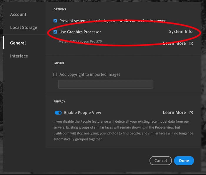 Windows users have one extra step they can use to troubleshoot Lightroom CC if it is laggy.