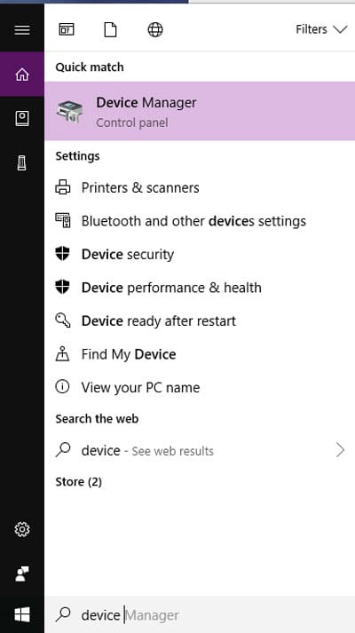 1. From the Windows menu, search Device Manager and select the top result. The works on all Windows 7 or higher operating systems.
