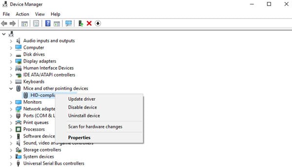 3. Right-click on the mouse driver and then select Update Driver Software.