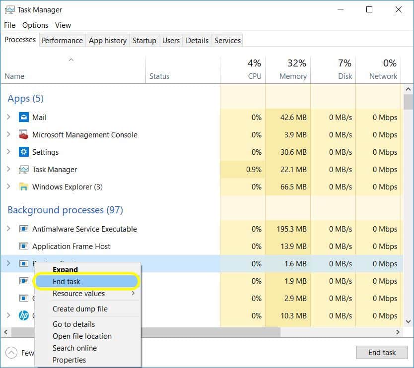 You can also check what is running in the background by opening the Task Manager using CTRL+ALT+DEL and selecting it from the list. From here, right-click and choose End Task. Don’t be surprised, however, if the process is respawned by whatever fired it up in the first place.