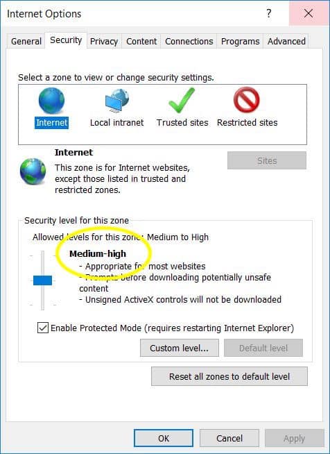 Ensure your browser’s security settings are not set too low or opened up. Today, these settings typically default to a higher security level, but you can check the documentation of your preferred browser for more information.