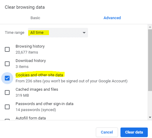 - Click Clear data