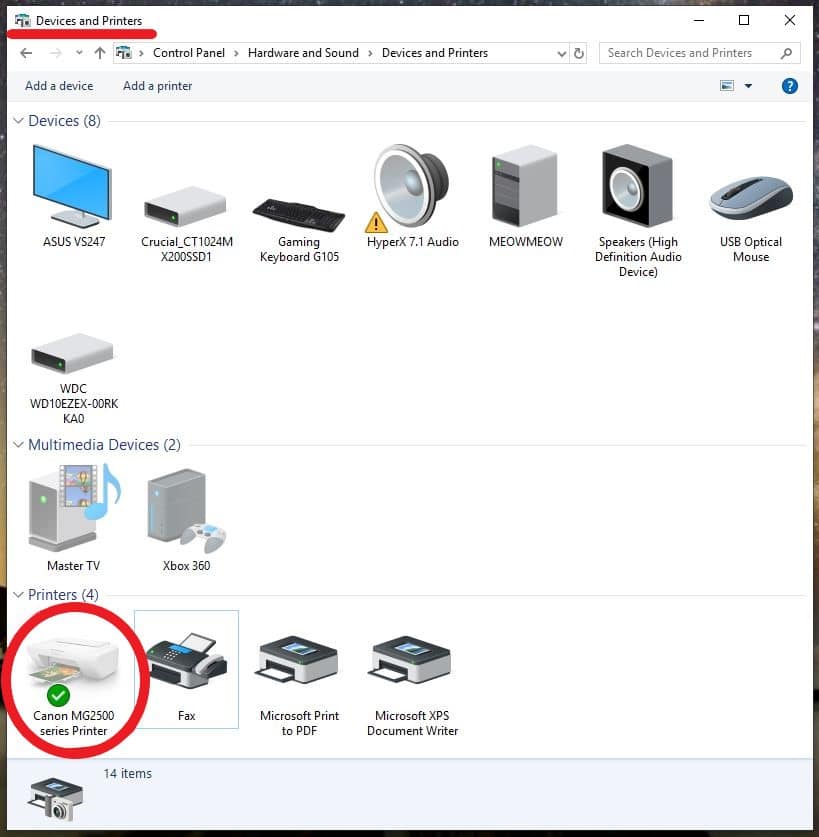 - Locate Devices and Printers in Control Panel: After you hit “OK,” a large box will open up with several menu items. Locate “Hardware and Sound.” Underneath it, click on “View devices and printers.”
