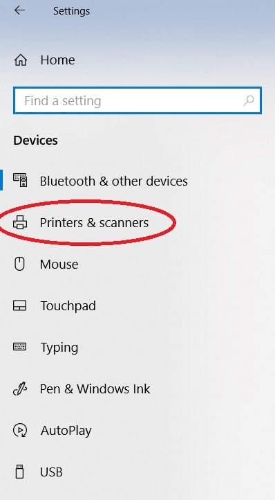 Along the left side of the window, you will see different categories under this setting. You should click on the “Printers & scanners” option.