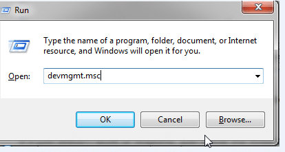 In the Windows “Run” box, type “devmgmt.mcs” and press enter to start device manager: