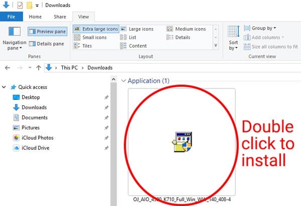 After the printer download finishes, navigate to the file in your downloads folder and double click the executable file to run the installer. Click through acceptance prompts to complete the installation.
