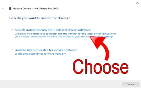 4. From the options, choose “Search automatically for updated driver software.”