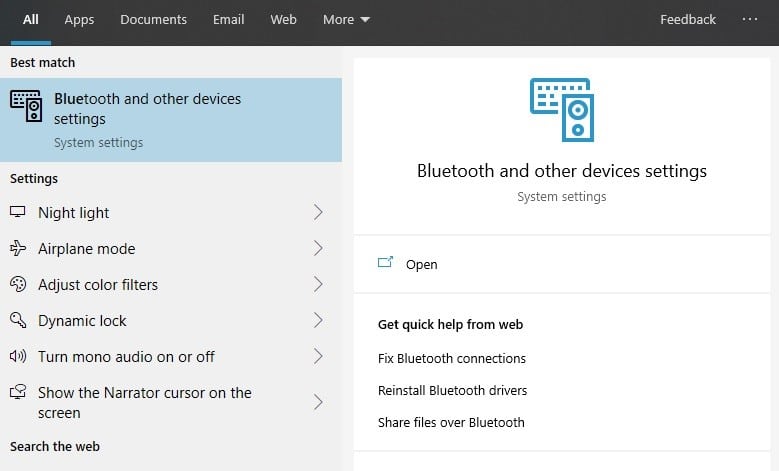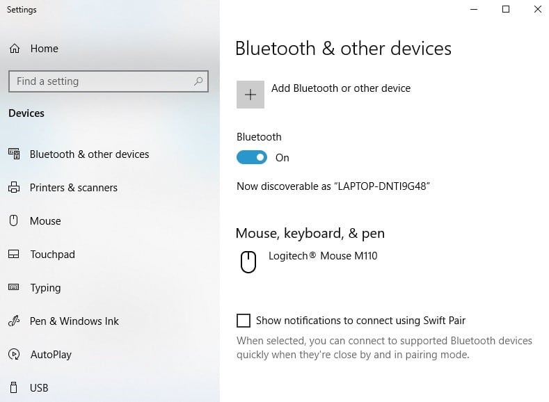 Once you’re in Device Settings, you’ll have to navigate to Bluetooth & Other Devices on a Windows 10 machine. This panel should automatically open when you click on Device Settings. In other devices, you may have to find the Bluetooth connection in the Device Settings.
