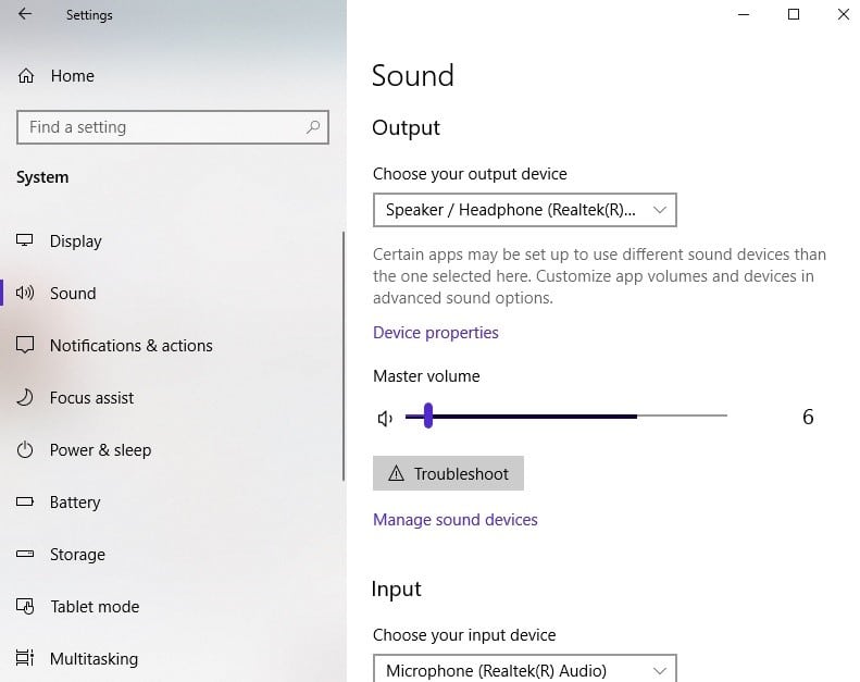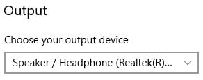 Here you’ll find various sections for audio output, audio input, advanced options, etc. Under the Output heading, there will be a drop-down menu.
