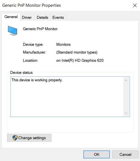 What you’re going to do next is click on any of these devices – obviously, if your Realtek Family Controller is your first priority, search through the list and find that. To show you how to check a device’s driver in general, what you see below is the properties of a monitor.