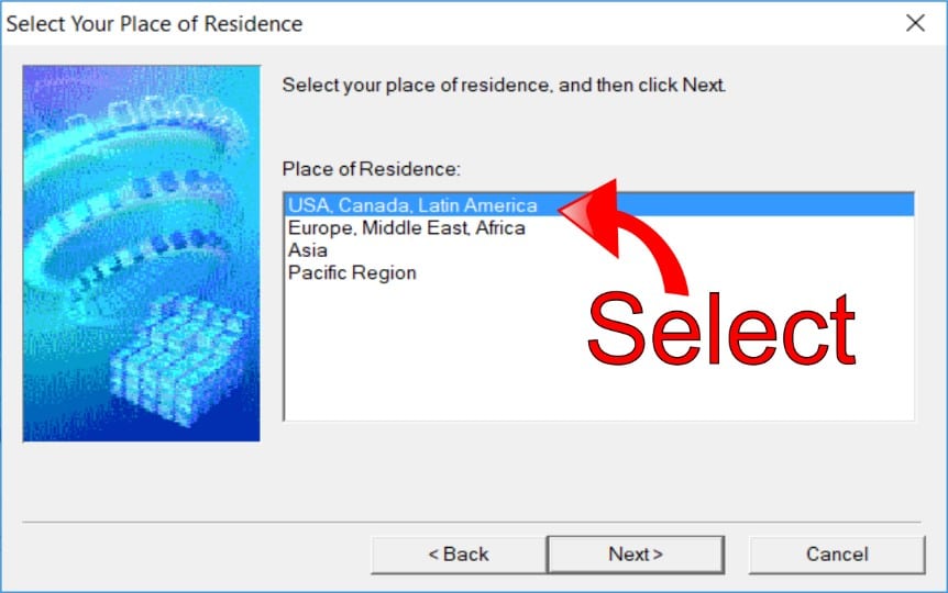 - You’ll need to select your region in order to accept the appropriate license agreement before continuing with the software installation.