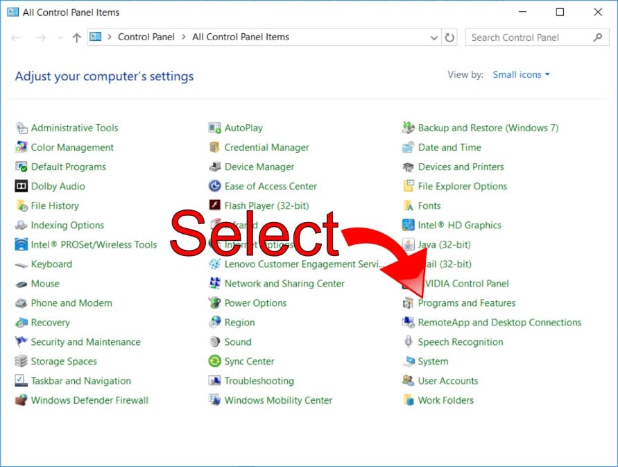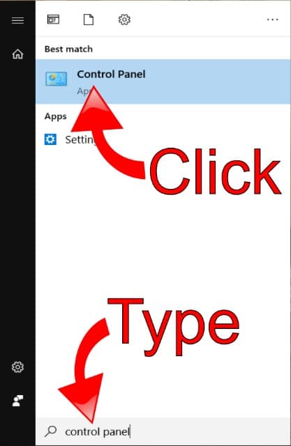 - You should access your PC’s Control Panel by hitting the Windows Key and typing Control Panel into the search box. From the search results, click on the Control Panel application.