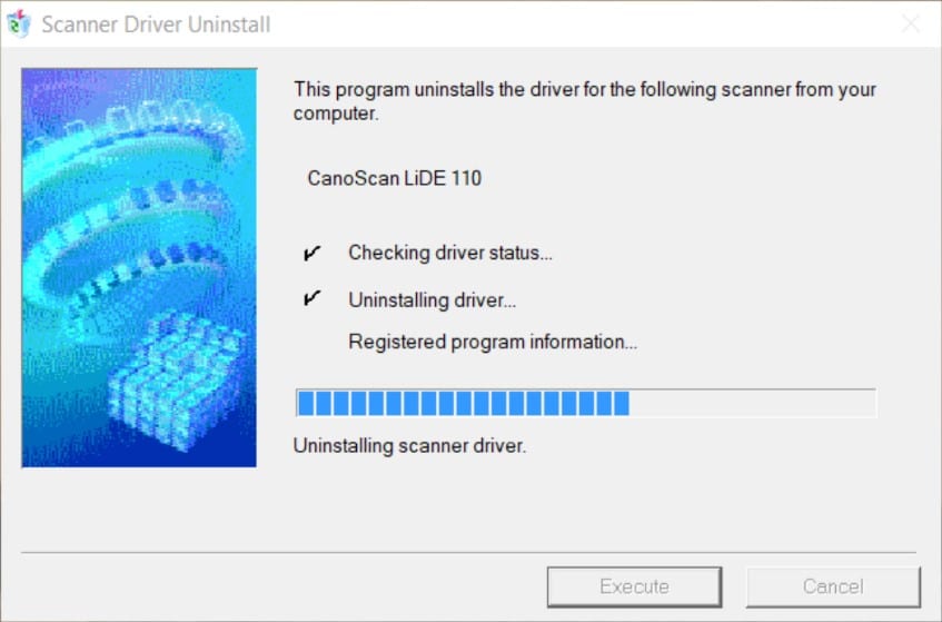 - On the Uninstall window, select Execute to remove the software. This will remove all the driver software from your PC before you can reinstall the latest version.