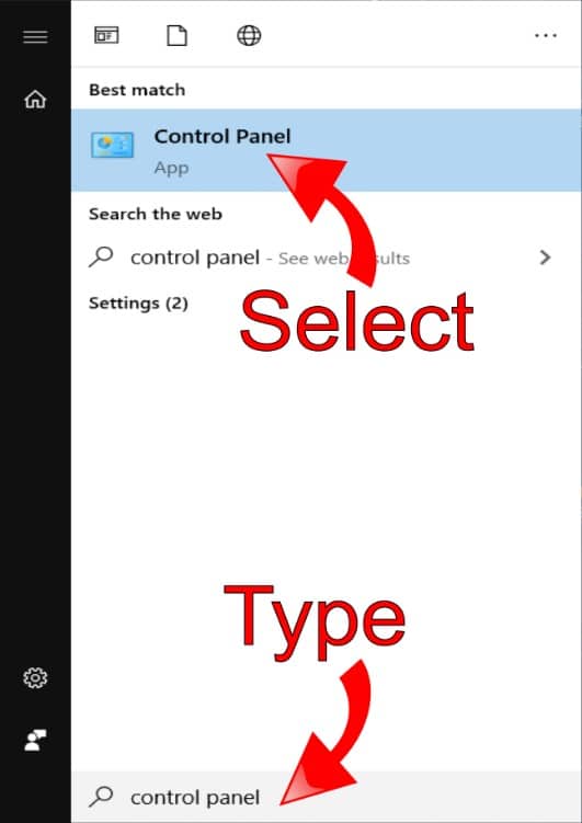 - To uninstall the current version, open Control Panel by hitting the Windows Key and typing Control Panel, then select the top result.