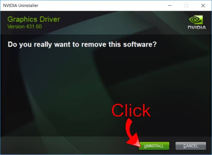 - This will load the NVIDIA Uninstaller that will allow you to make changes to your driver software.