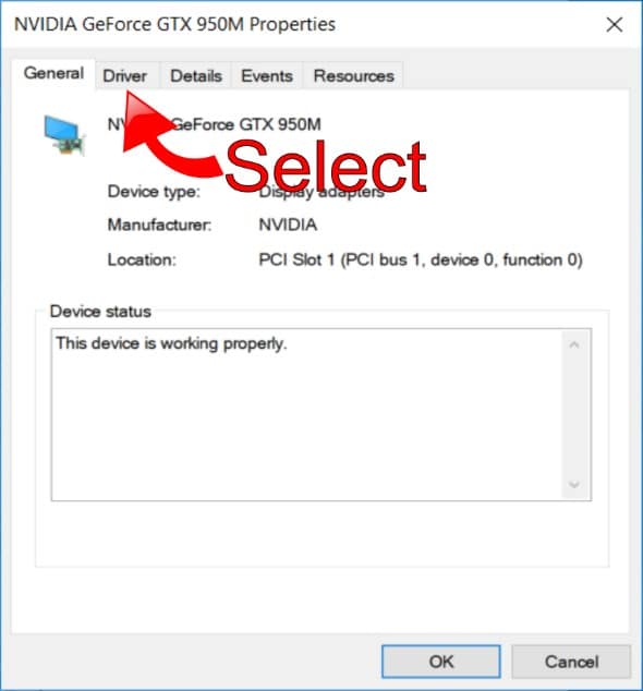 - Click on the Driver tab and verify it’s the version you want to use on your PC.
