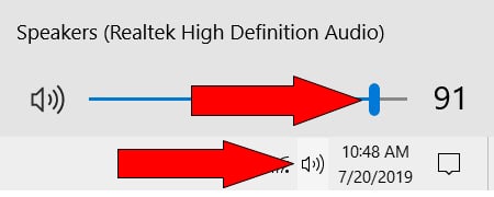 - Click the Speakers icon in the taskbar to display the volume slider.