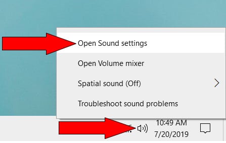 - Right-click the Speakers icon in the taskbar and select Open Sound settings.