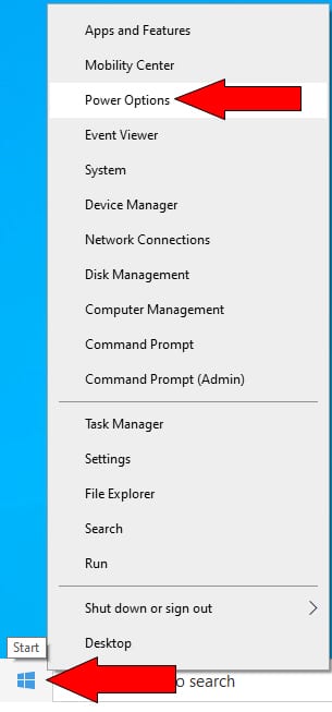 - Right-click the Windows Start button and select Power Options.