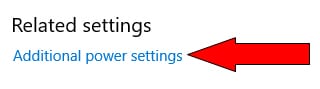 - This opens the Settings window with the Power & sleep page displayed. Scroll down the page to the Related settings section and click Additional power settings.