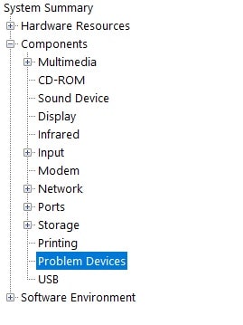 - Expand Components and Select Problem Devices. Take note of any problem devices that show up (you’ll need this for the next few sections).