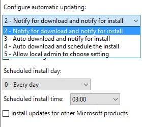- Click Configure automatic updating and select 2-Notify for download and notify for install. You will now be notified the next time updates are available.