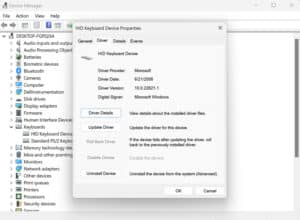 4. Check the Driver Tab: Within the keyboard properties window, click on the ‘Driver’ tab. Here you will find details about the driver currently installed, including the driver version number and the date it was last updated.