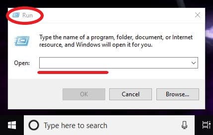- Open the “Run” box: You can do so by holding down the “Windows” key + the “R” key on your keyboard. It will bring up a small box in the lower left-hand corner of your screen.