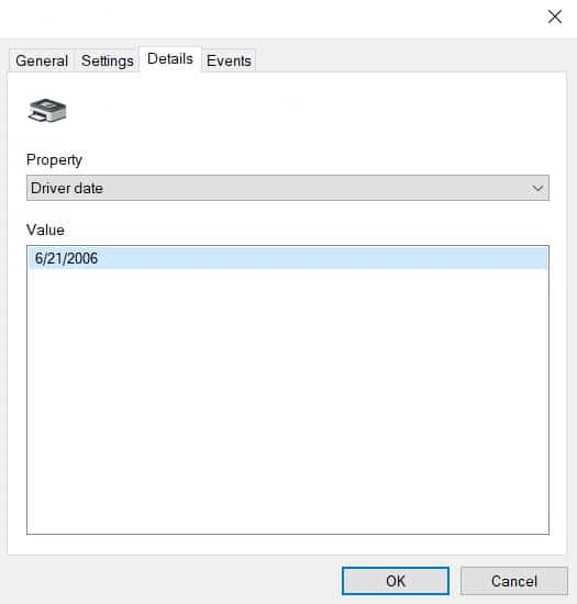 If you click on the “Details” tab, you will be taken to a dropdown list that can tell you all about your printer’s properties – including information about the driver, such as when it was last updated and the date associated with it.