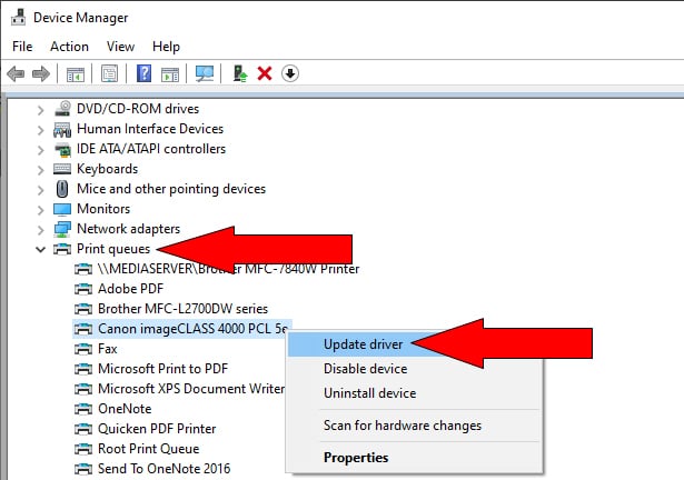 - Double-click to expand the Print queues section. (On some versions of Windows you should expand the Printers section, instead.)