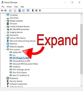 If the HP printer is available in the list, but still does not process a print job, (i.e. the print job is added to the queue or spool, but not actually printing) you can choose to update the driver from the Device Manager.