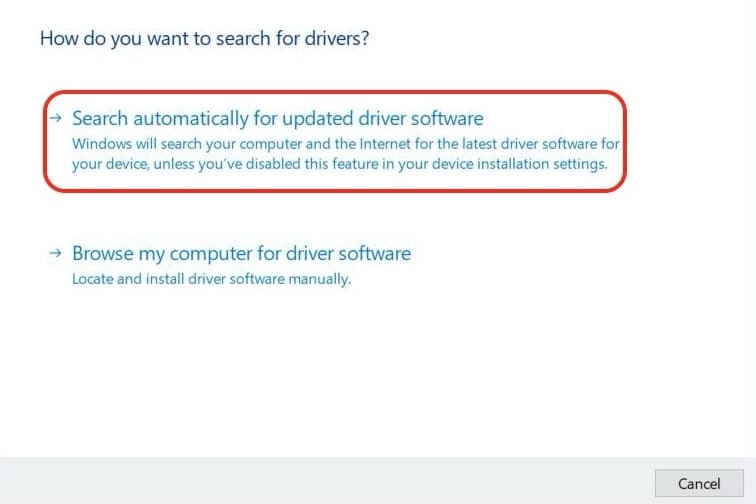 You’ll see two choices – take the first one that allows Windows to do the searching. If it finds a better driver, you’ll be notified. Likewise, it’ll let you know if the O/S couldn’t find another driver.
