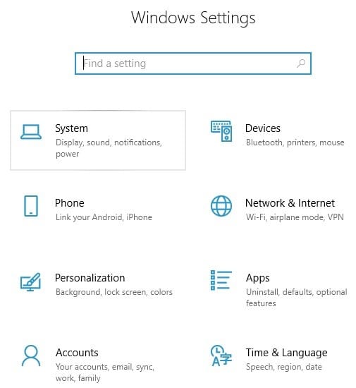 On the Windows 10 device, go to the Windows Icon in the lower right-hand corner and click on the gear icon for Settings. You’ll be brought back to the Windows Settings window.